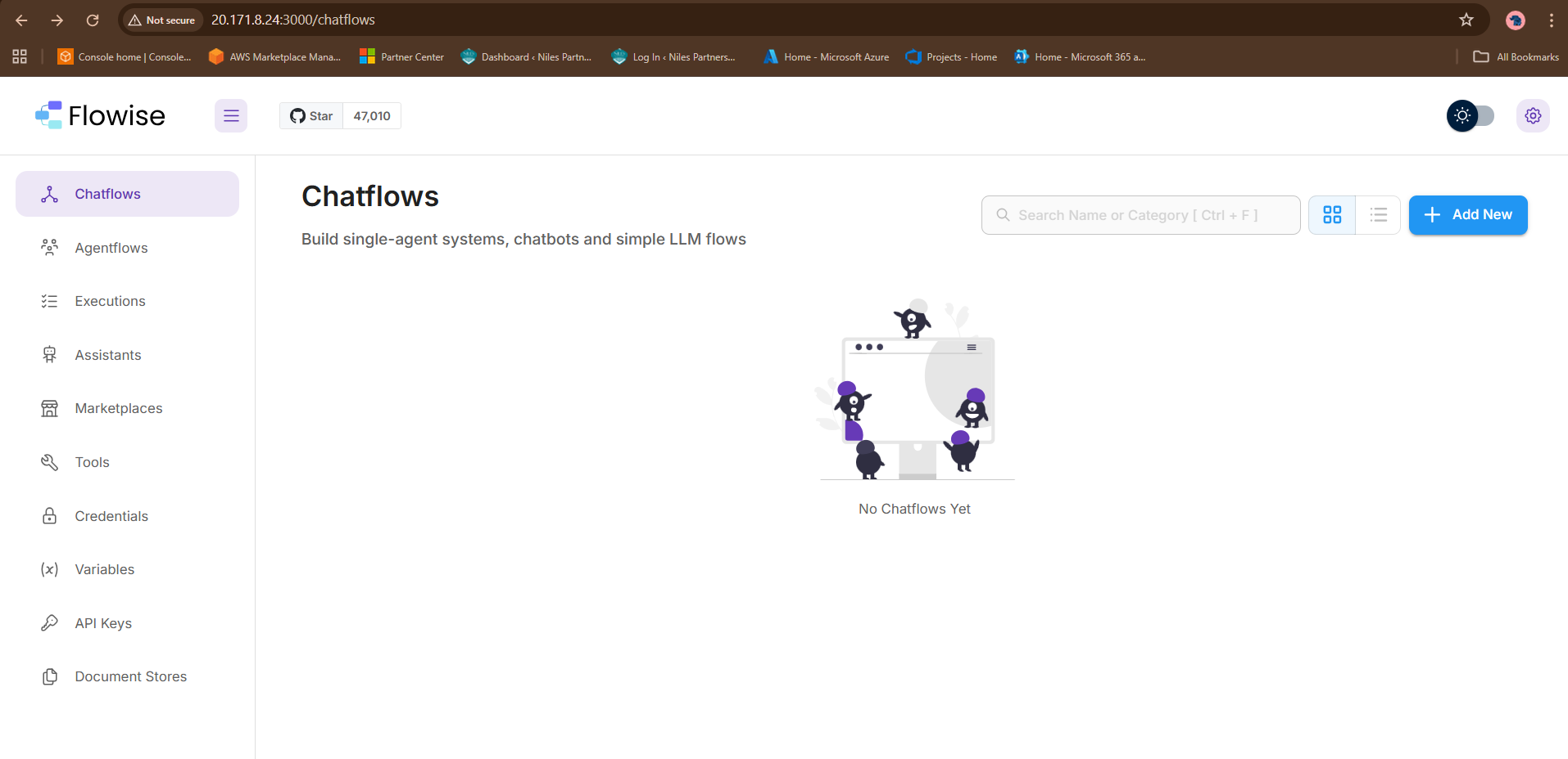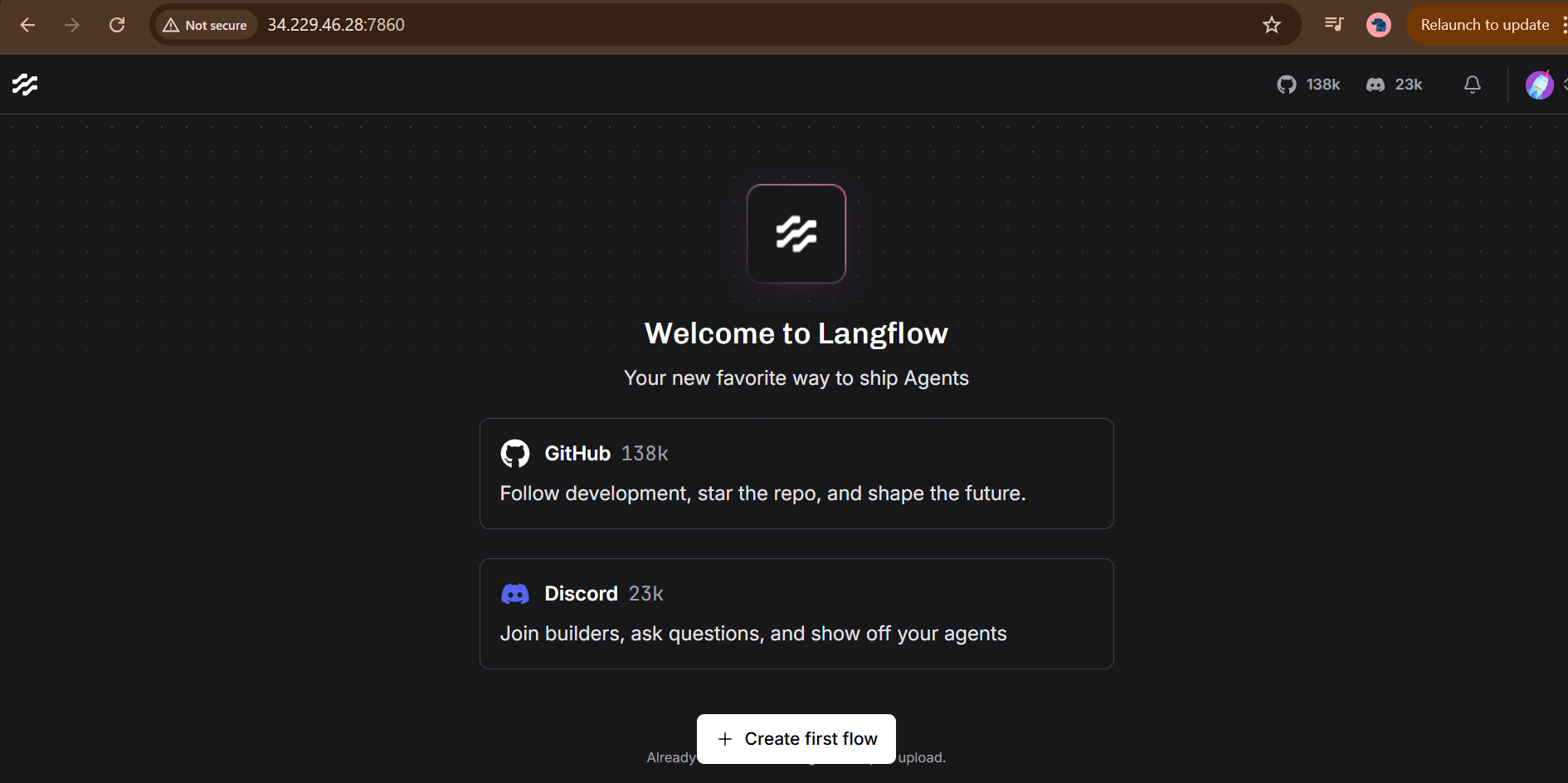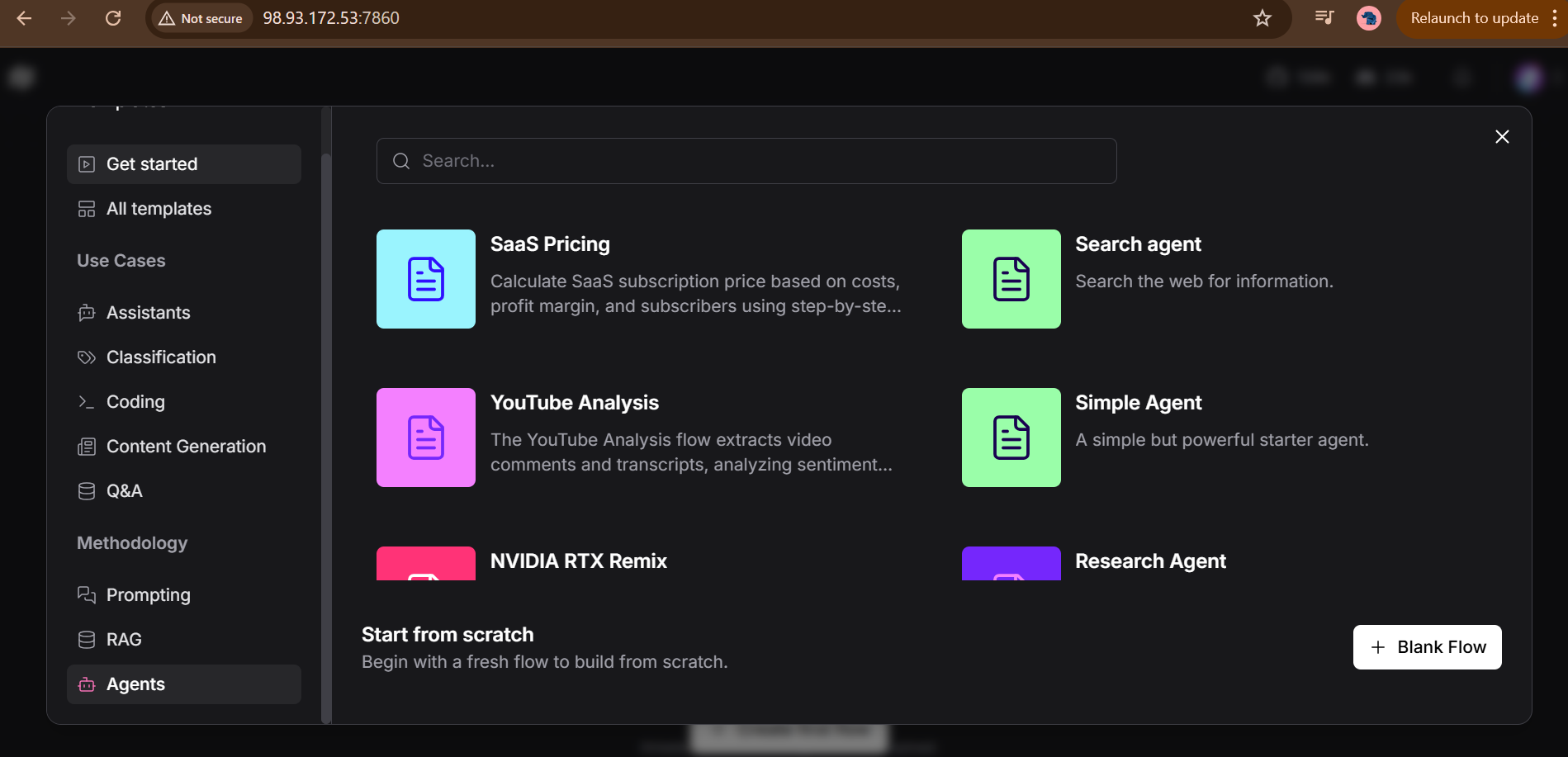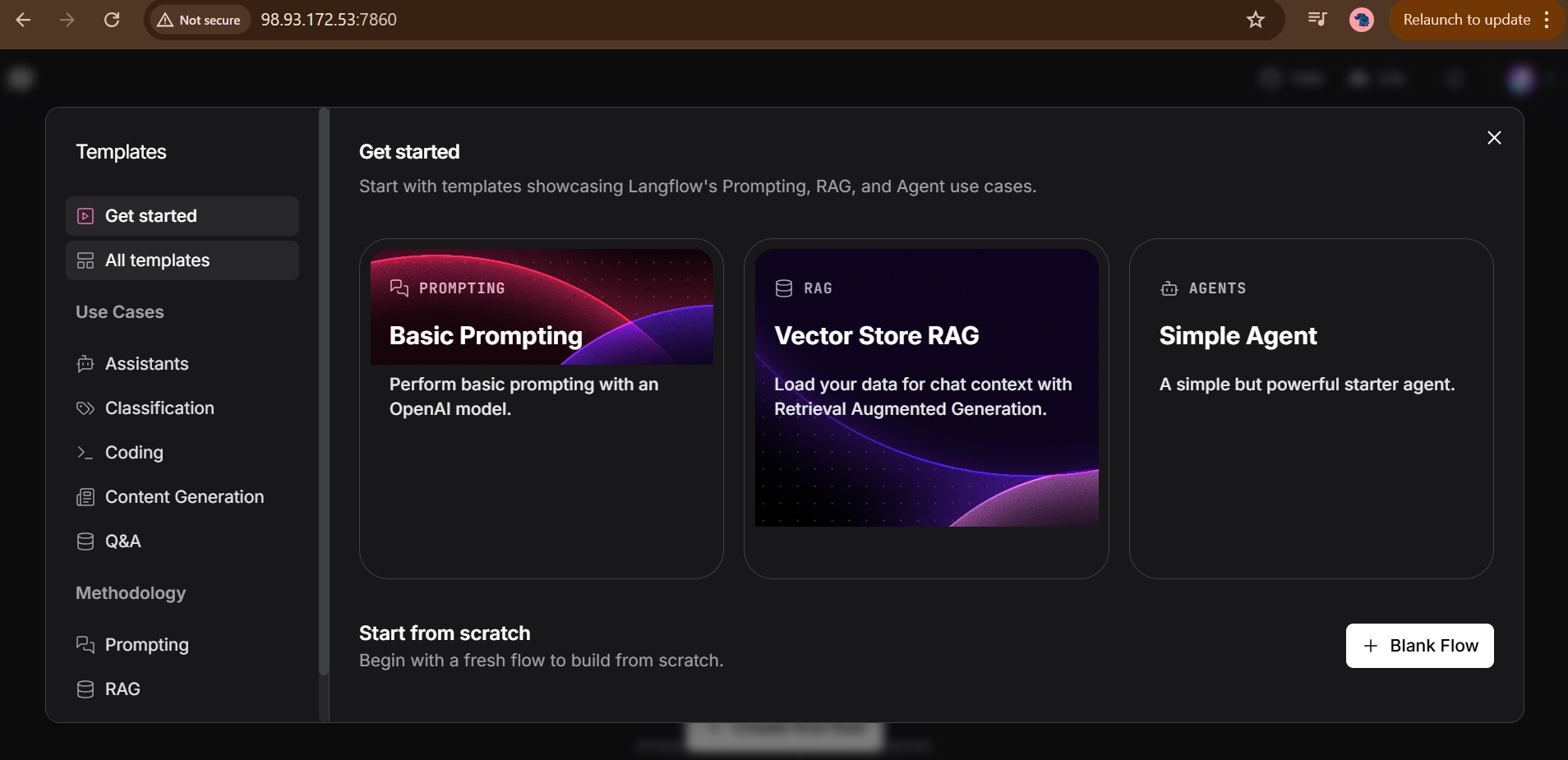 Langflow: TCP 7860(Accessible at http://<ip>:7860 and Flowise <ip>:3000