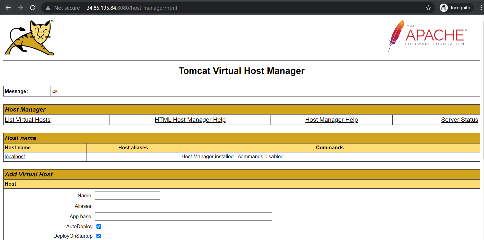 Step 4 : Login for Host Manager.