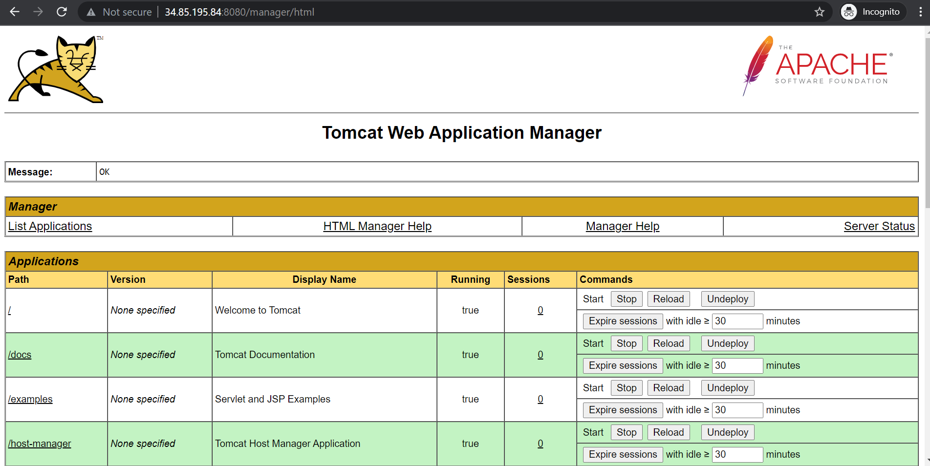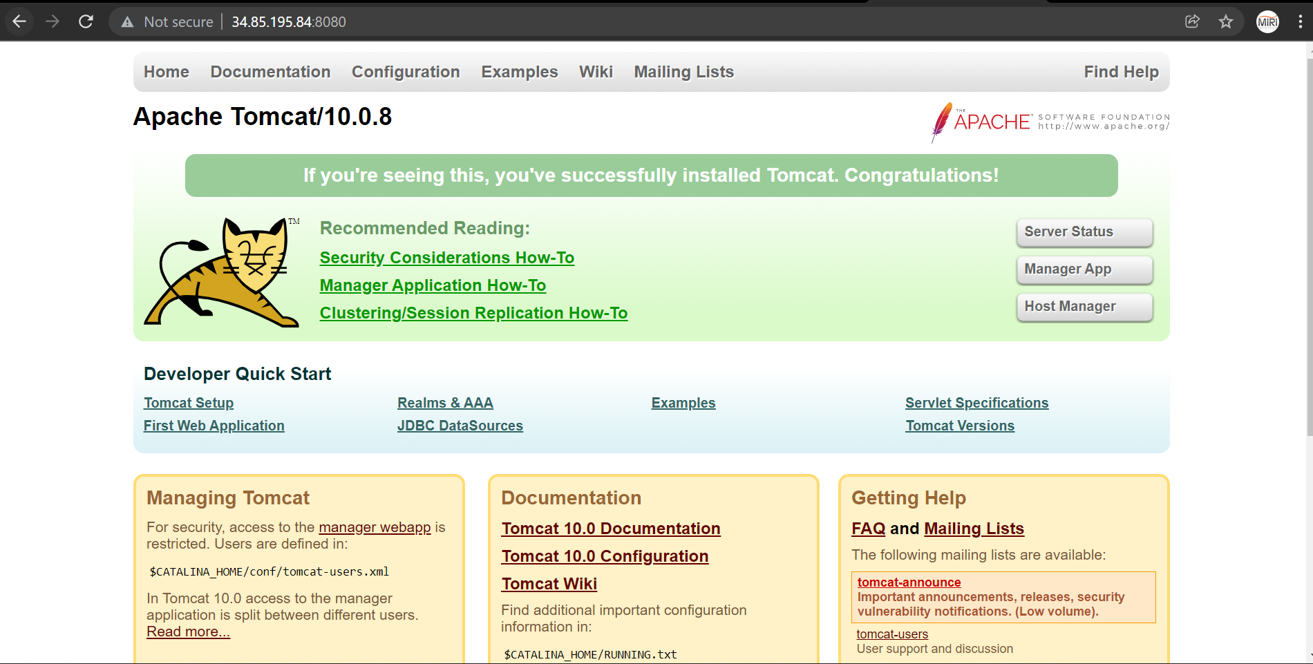 Step 3: Use the browser to access the application at http://<instance ip address:8080>