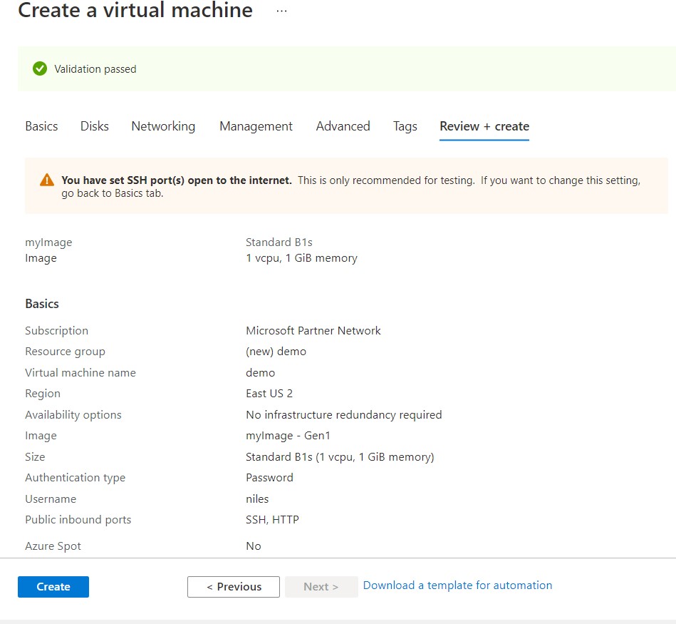 Click on review + create button.