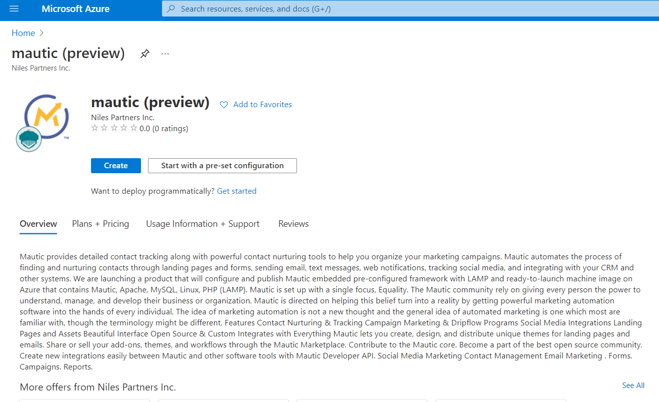 We are launching a product that will configure and publish Mautic embedded pre-configured framework with LAMP and ready-to-launch machine image on Azure that contains Mautic, Apache, MySQL, Linux, PHP (LAMP).