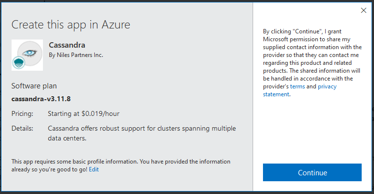 Step 1: Access the Cassandra in Azure Marketplace and click on Get it now button.