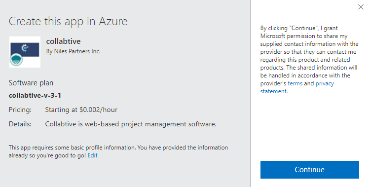 Step 1: Access Collabtive from Azure Marketplace and click ON Get it now button.