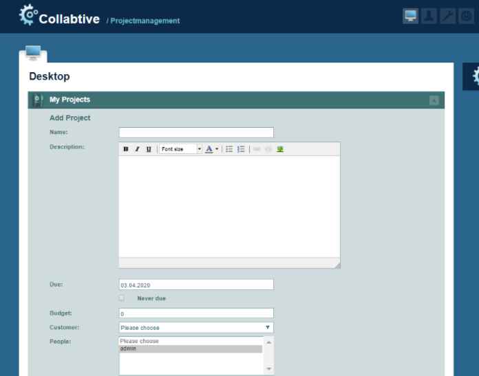 Collabtive is intended for small to medium-sized businesses and freelancers. We offer commercial services for installation and customization of Collabtive. It can also be installed on an internal server as well as in the cloud.