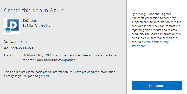 Step 1: Access Dolibarr from Azure Marketplace and click ON Get it now button.
