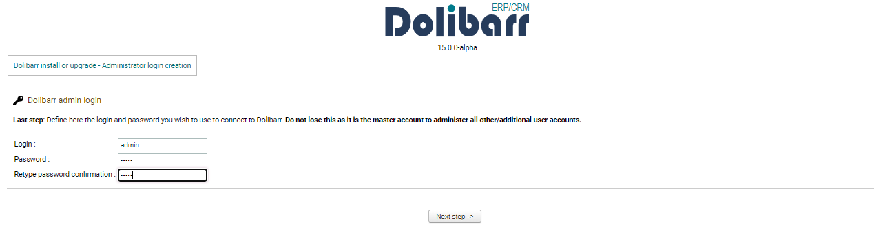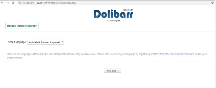 Step9: Dolibarr login portal appears,
