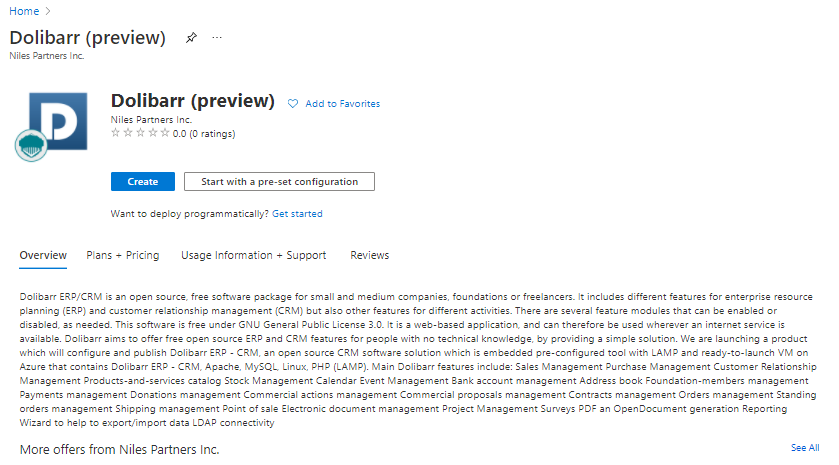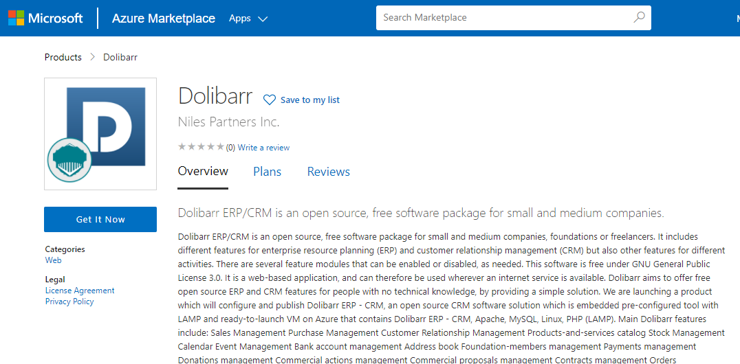 We are launching a product which will configure and publish Dolibarr ERP – CRM, an open source CRM software solution which is embedded pre-configured tool with LAMP and ready-to-launch VM on Azure that contains Dolibarr ERP – CRM, Apache, MySQL, Linux, PHP (LAMP).