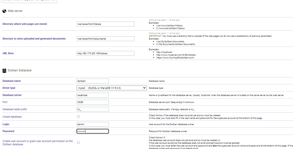 Database name- dolibarr,