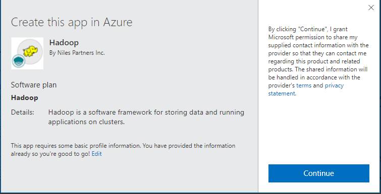 Step 1: Access the Hadoop in Azure Marketplace and click ON Get it now button.