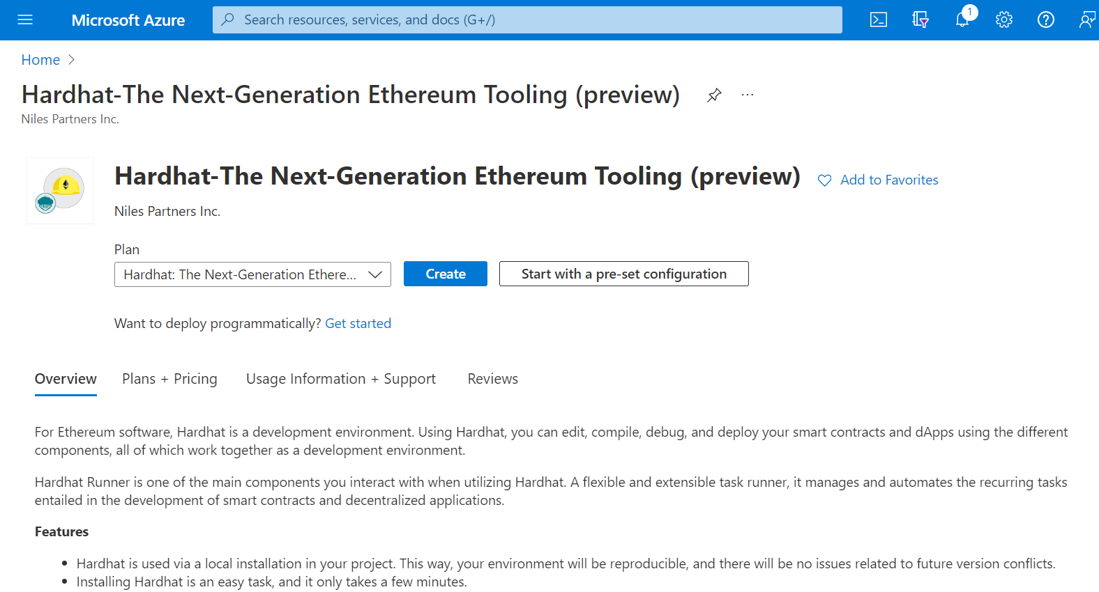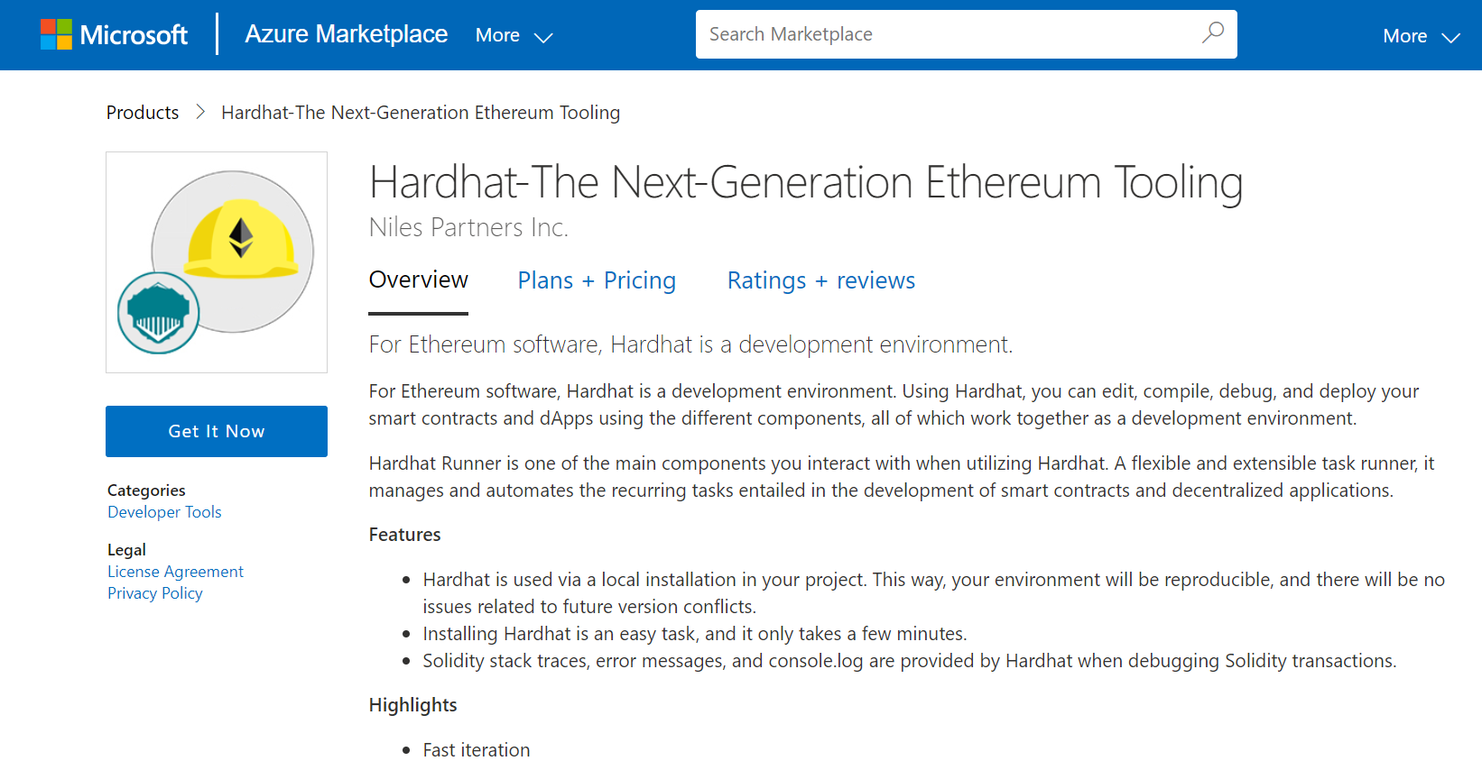 Step 1: Access the Hardhat in Azure Marketplace and click on Get it now button.