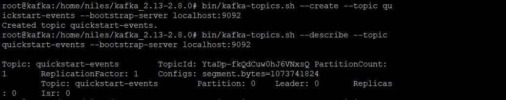 bin/kafka-topics.sh –create –topic quickstart-events –bootstrap-server localhost:9092