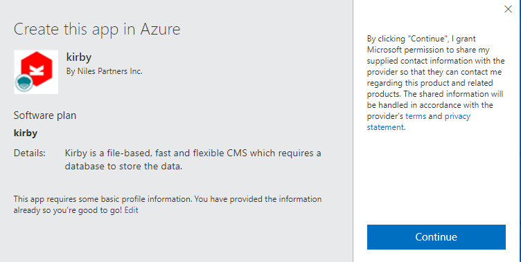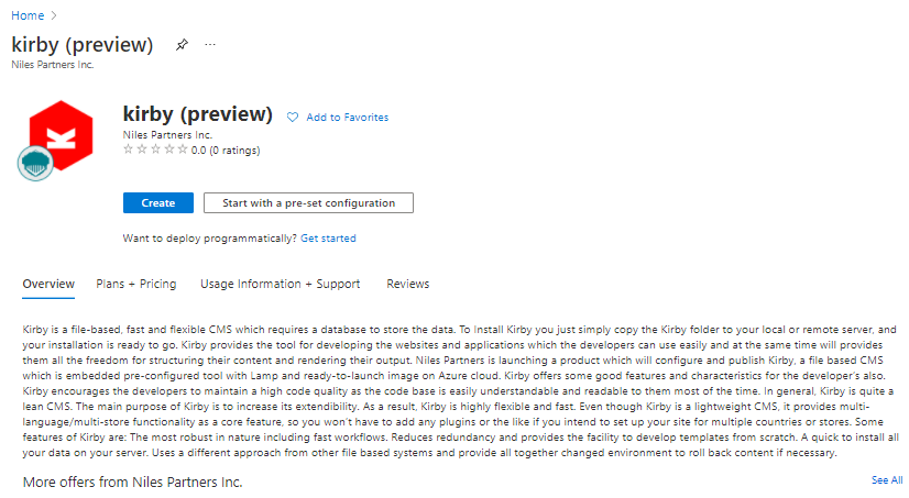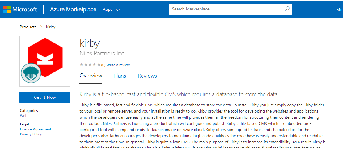 Step 1: Access Kirby from Azure Marketplace and click ON Get it now button.