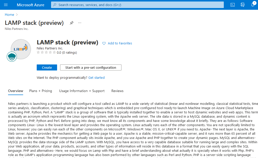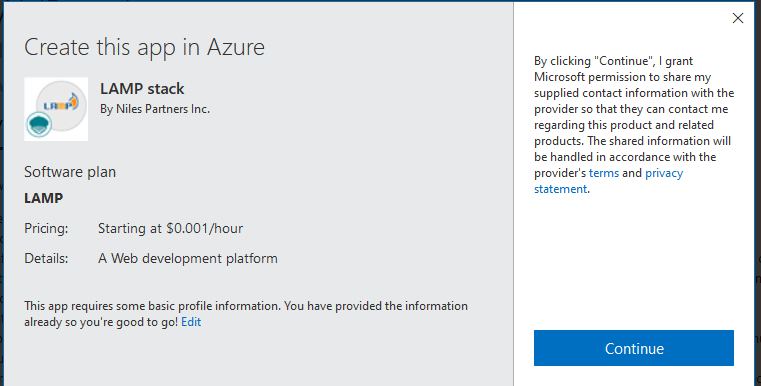 Step 1: Access LAMP in Azure Marketplace and click on get it now button.