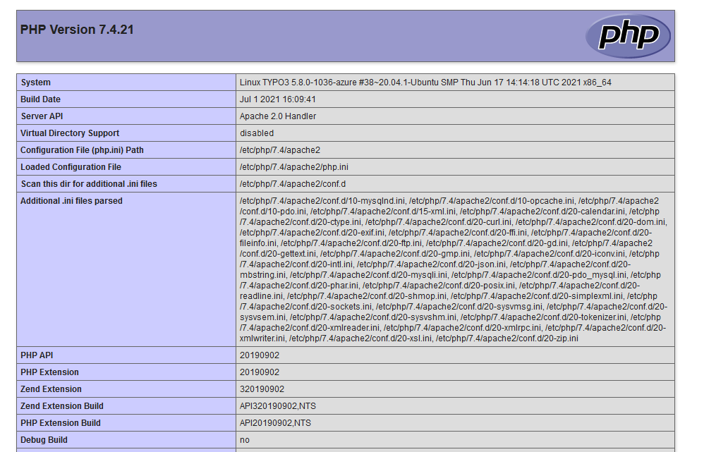 Php with latest version installation Page
