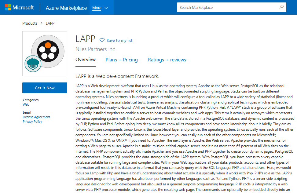 Step 1: Access LAPP in Azure Marketplace and click on get it now button.