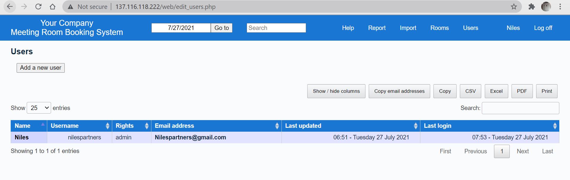 Room administrator can be informed of appointments by email.