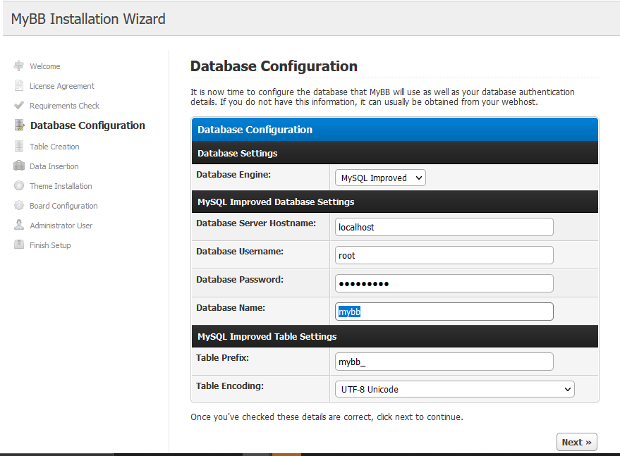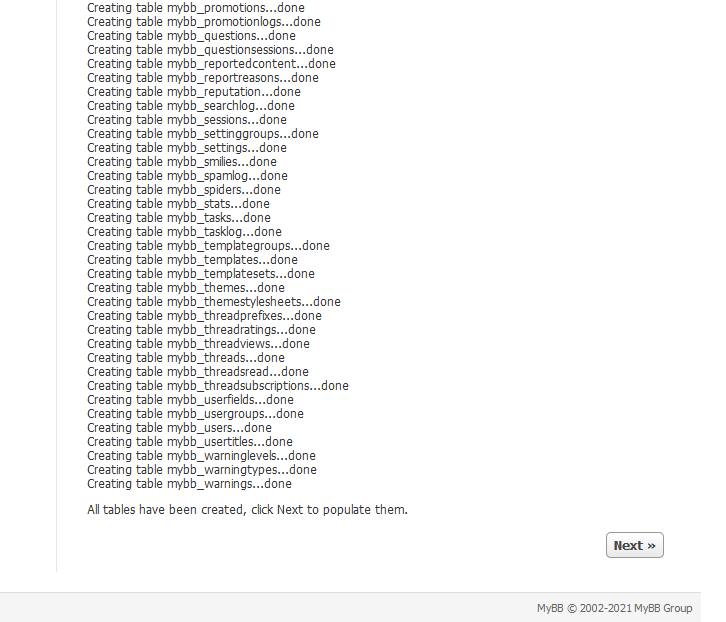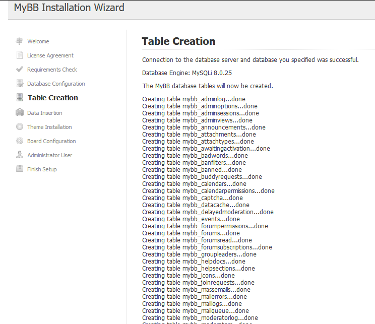 Step 3: After you test the database connection it will create tables,