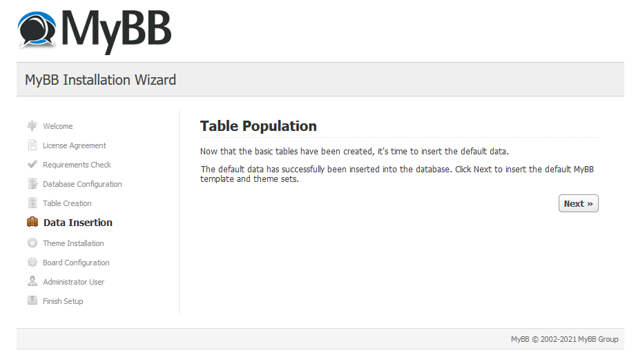 After table population click on next,
