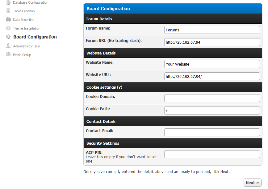 Step 1: Use the browser to access the application at http://<instance ip address> Replace instance ip address with the actual IP address of the running instance, Your installation dialogue will appear.