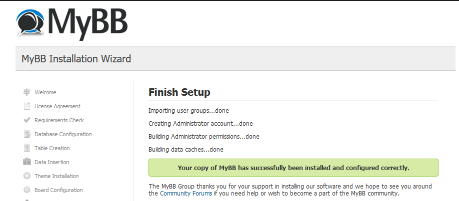 After filling up details your installation is finished, your my bb website appears,