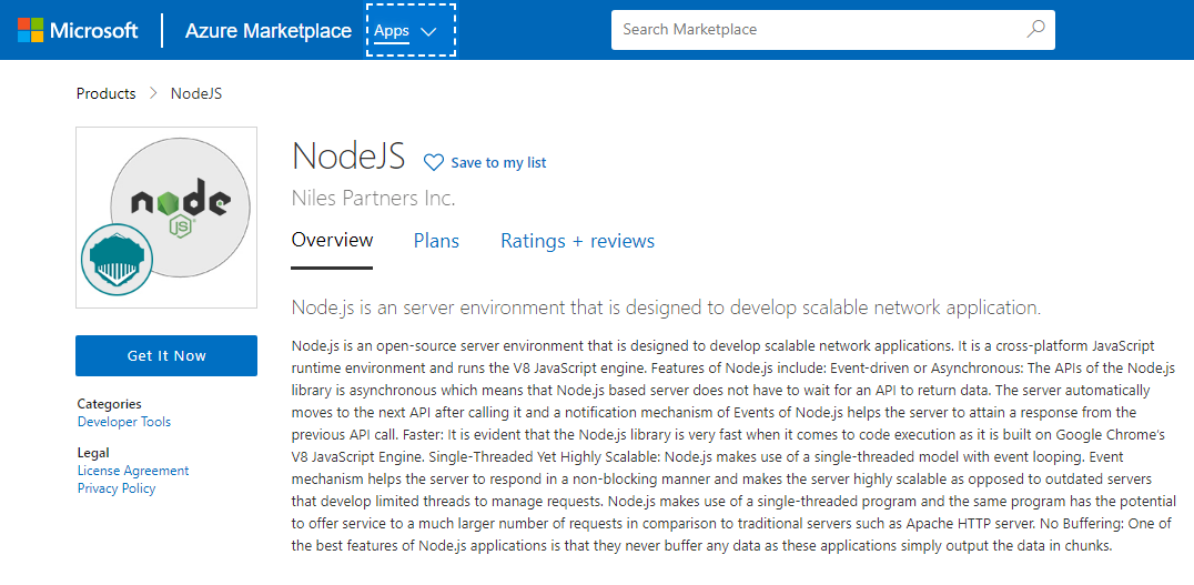 Step 1: Access the Nodejs in Azure Marketplace and click on Get it now button.