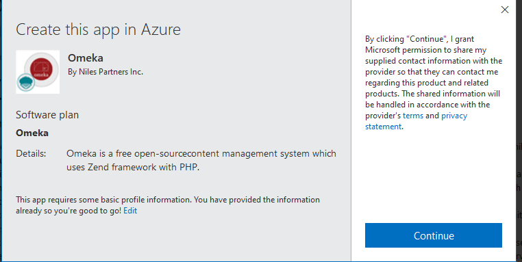 Step 1: Access OMEKA from Azure Marketplace and click ON Get it now button.