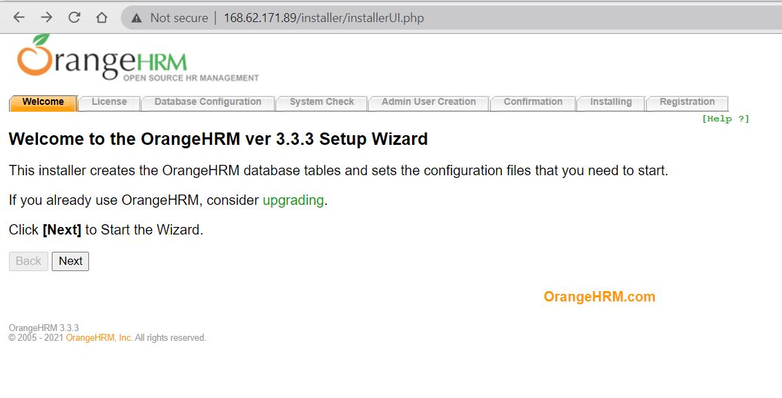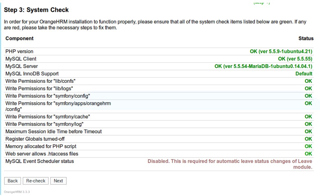 Make sure all of the system check items are green. Then Click on the “Next” button. You should see the following page.