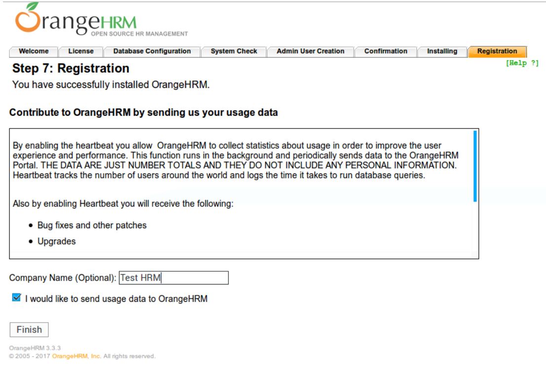 Provide your company name and click on the “Finish” button, you should see the OrangeHRM login page in below image.