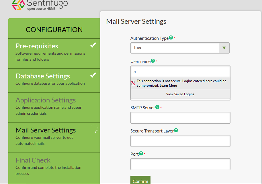 Step 6:  Configure Application Setting and Mail Server Setting.