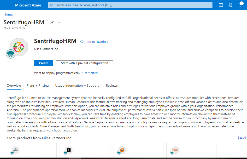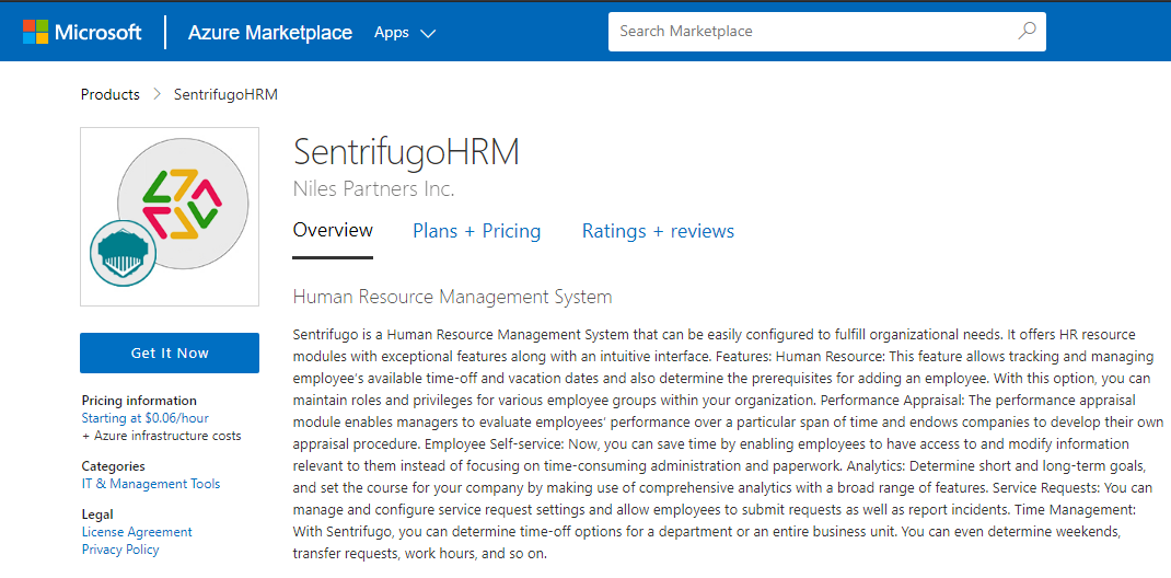 Step 1: Access SentrifugoHRM in Azure Marketplace and click on get it now button.