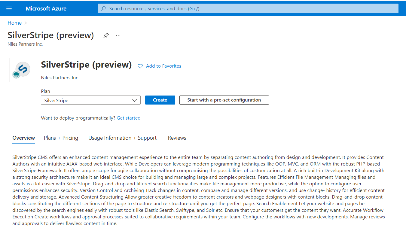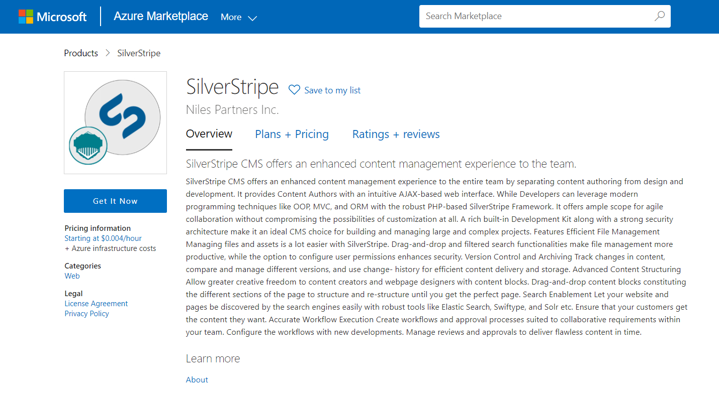 Step 1: Access the SilverStripe in Azure Marketplace and click on Get it now button.