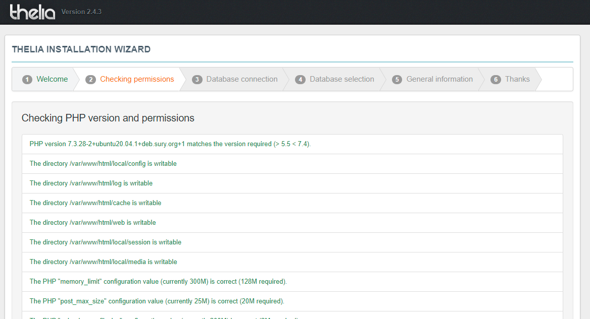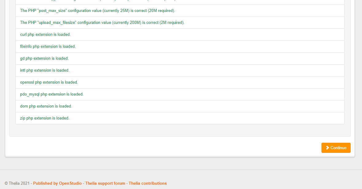 Step 6: Review the PHP Configuration & Click on “Continue”: