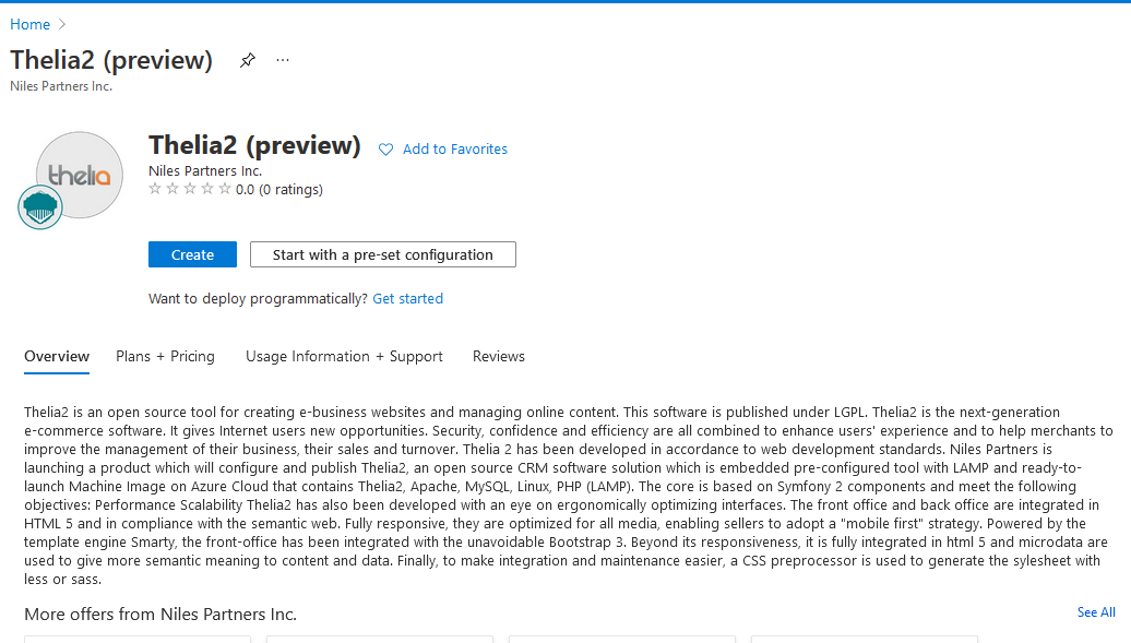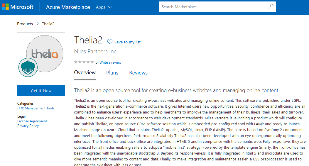 Step 1:Access Thelia2 in Azure Marketplace and click on get it now button.