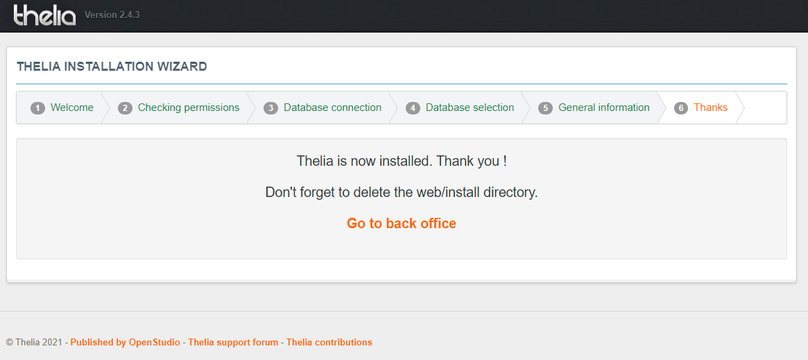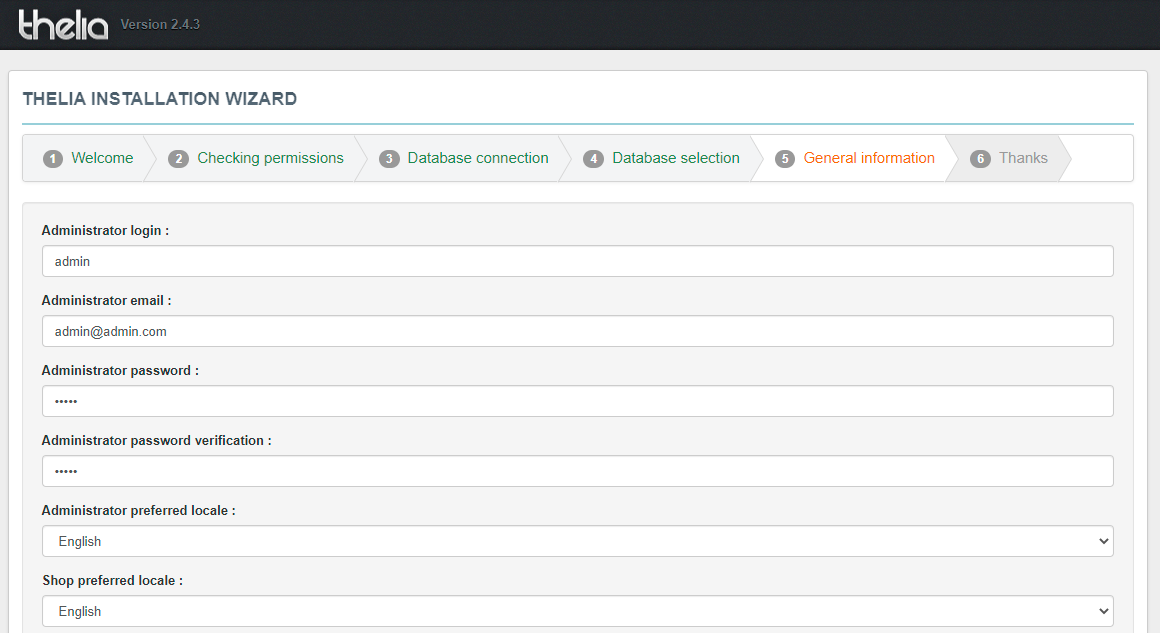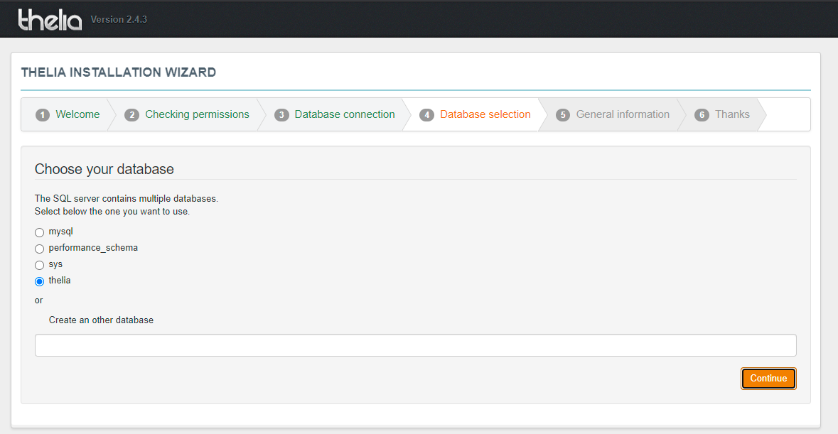 Step 8: Select the Pre-Created database “thelia” or you can create your own Database: