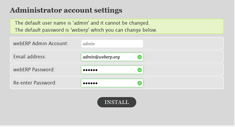 WebERP Admin Account : admin (not allowed to change this name)