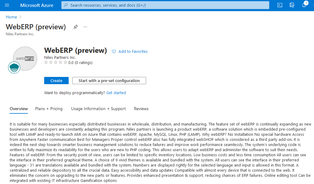 Niles partners is launching a product webERP, a software solution which is embedded pre-configured tool with LAMP and ready-to-launch AMI on Azure that contains webERP, Apache, MySQL, Linux, PHP (LAMP).