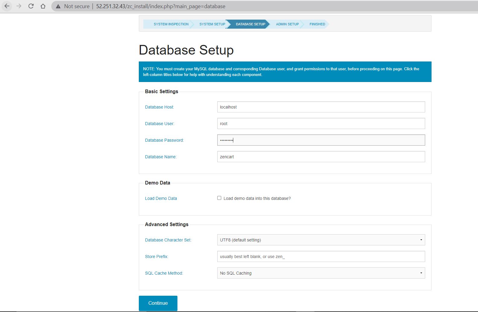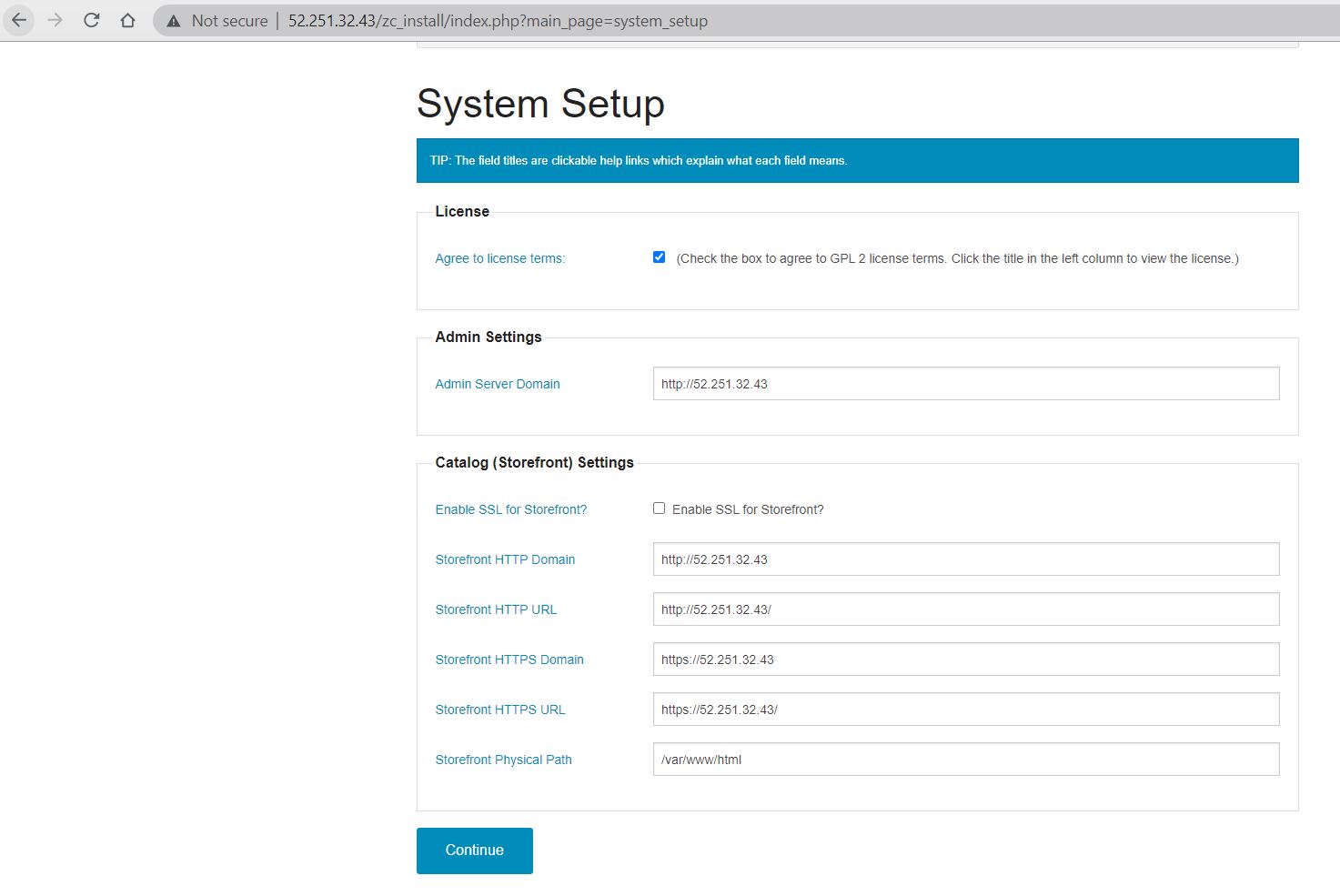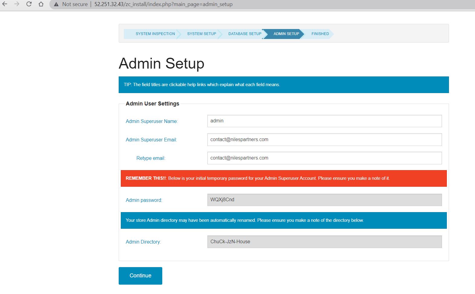 Now Click on Continue and Fill the details for admin