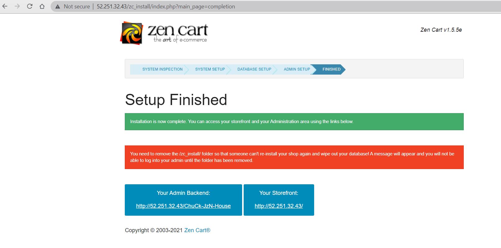 Zencart is installed now.