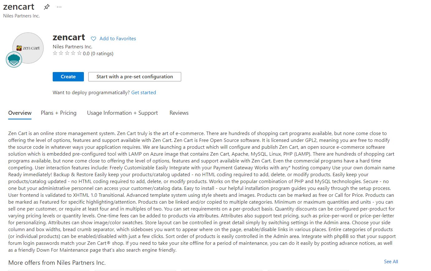 We are launching a product which will configure and publish Zen Cart, an open source e-commerce software solution which is embedded pre-configured tool with LAMP on Azure image that contains Zen Cart, Apache, MySQL, Linux, PHP (LAMP).