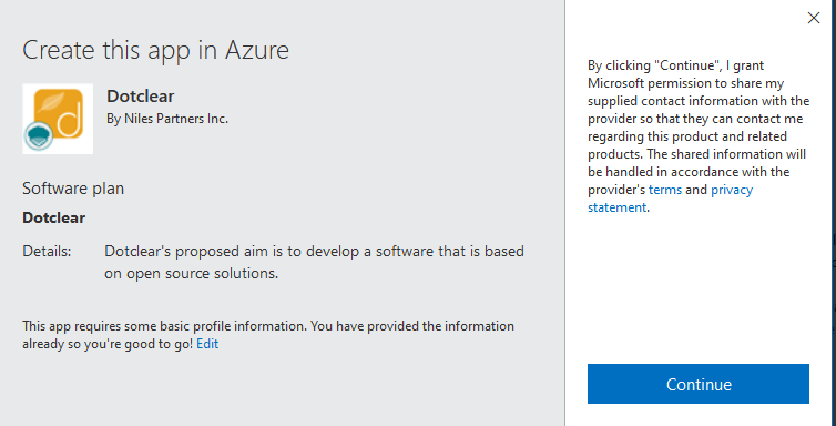 Click on “Continue”.