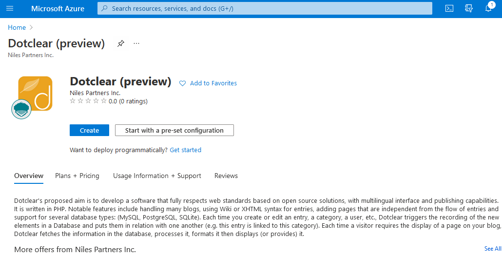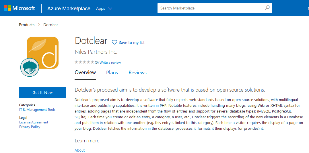 Step 1: Access DOTCLEAR CMS from Azure Marketplace and click ON Get it now button.