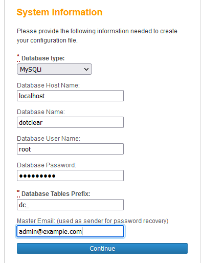 Step 4: Now Enter the following Database details or you can create your own database: