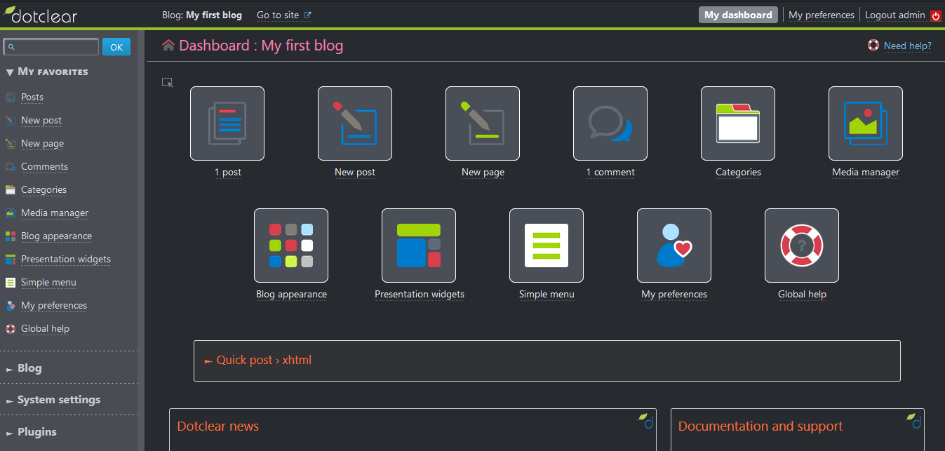 Dotclear’s proposed aim is to develop a software that fully respects web standards based on open source solutions, with multilingual interface and publishing capabilities. It is written in PHP.